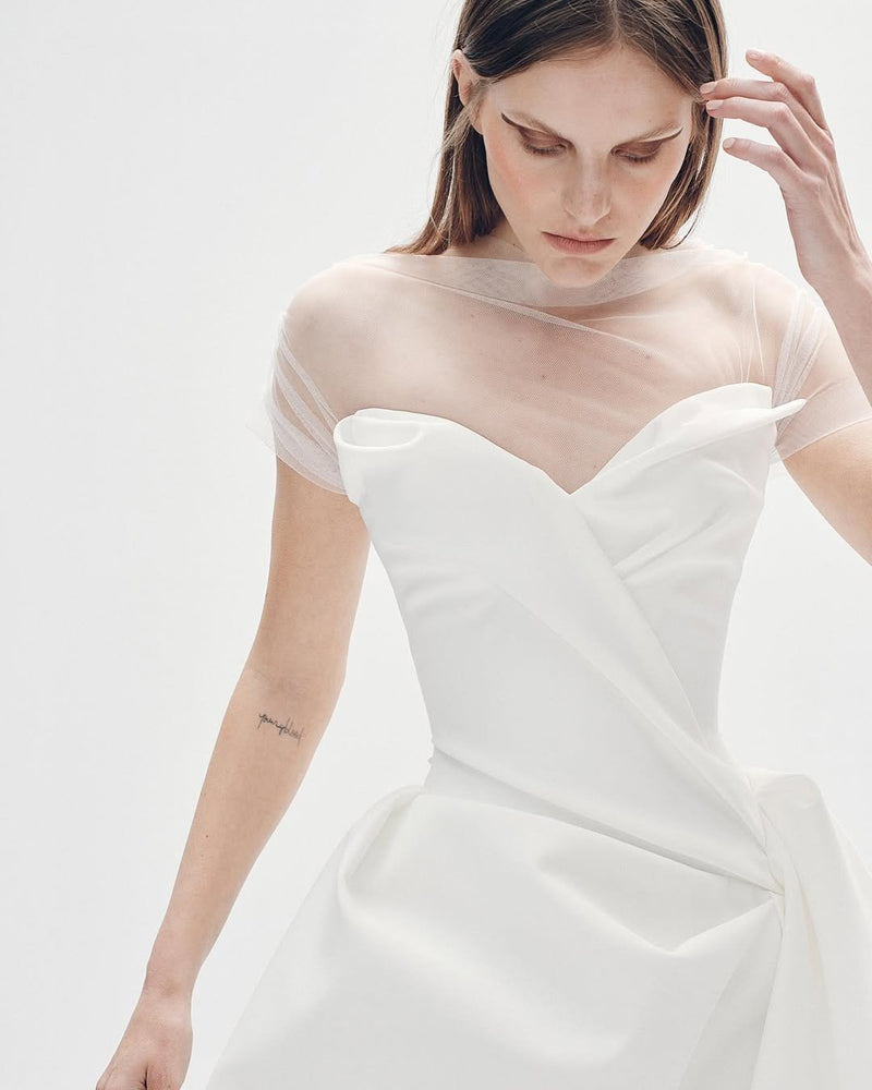 Elly Sofocli creates wedding gowns that blend opulence with modern edge, defined by clean cuts, rich textures, and exceptional craftsmanship. Designed for the fashion-forward bride seeking a distinctive, editorial look, each piece offers both individuality and comfort.