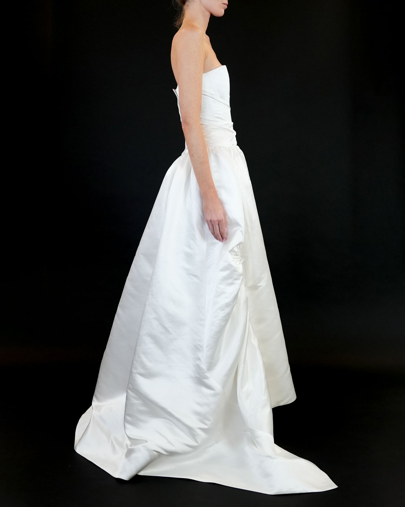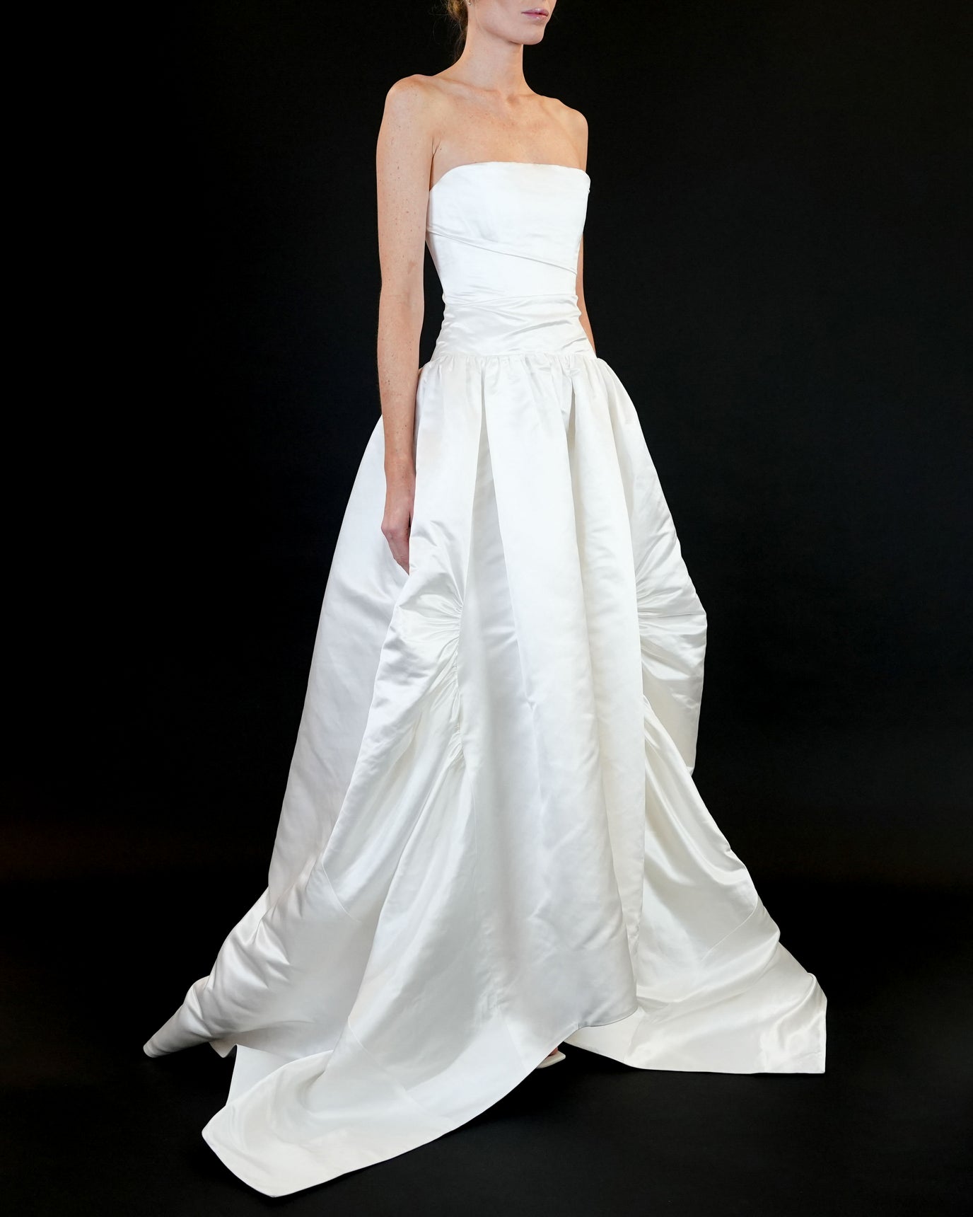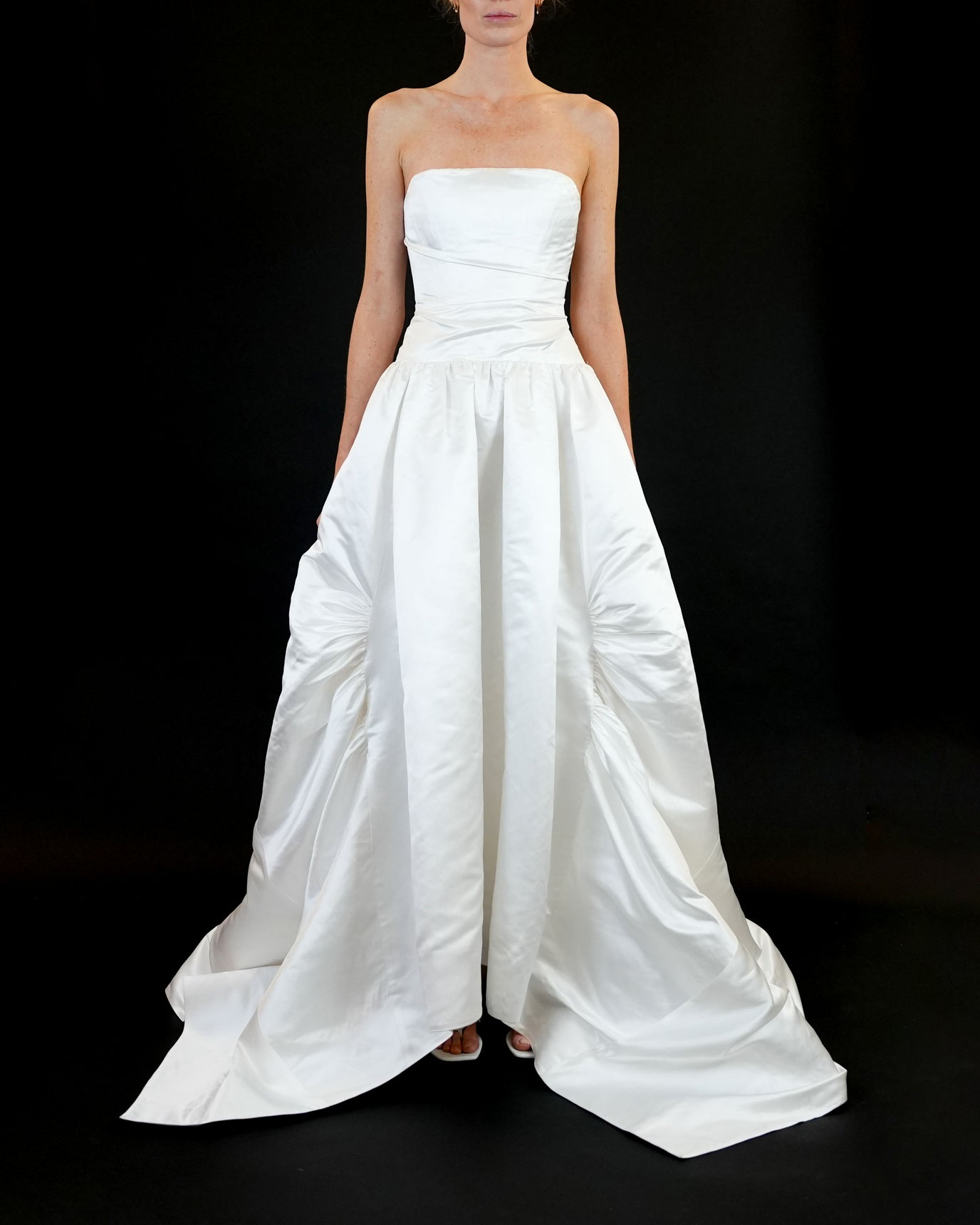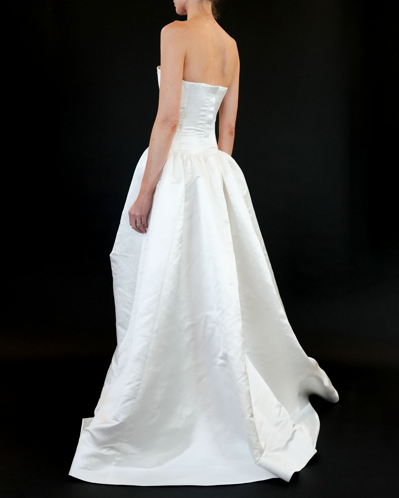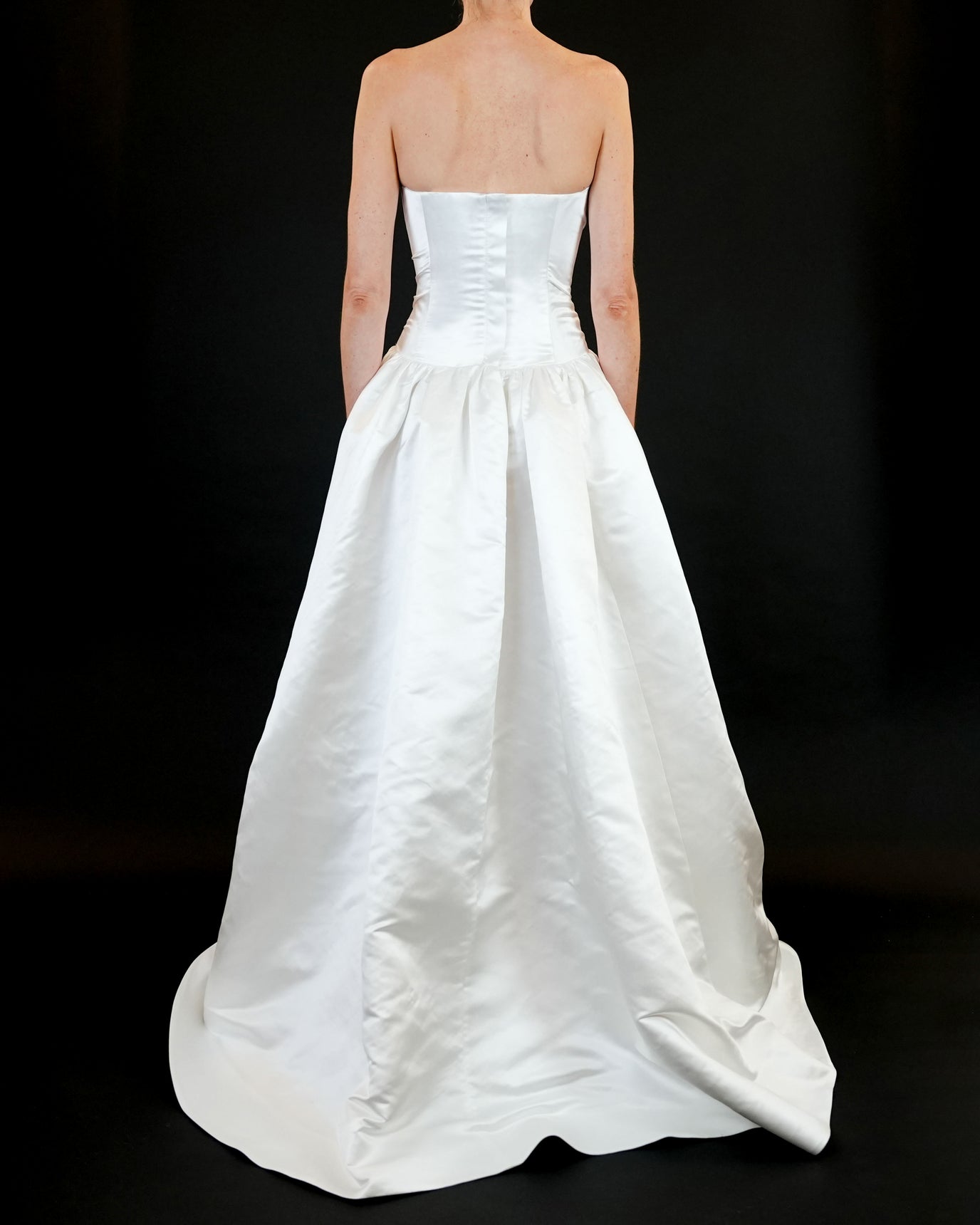 The Ursa Corset Dress is inspired by the Nellie Custom Dress. This design seamlessly incorporates the same skirt drape as the original, coupled with our signature draped corset. The dress is fully lined, creating a full and voluminous skirt.