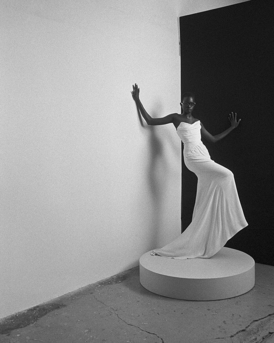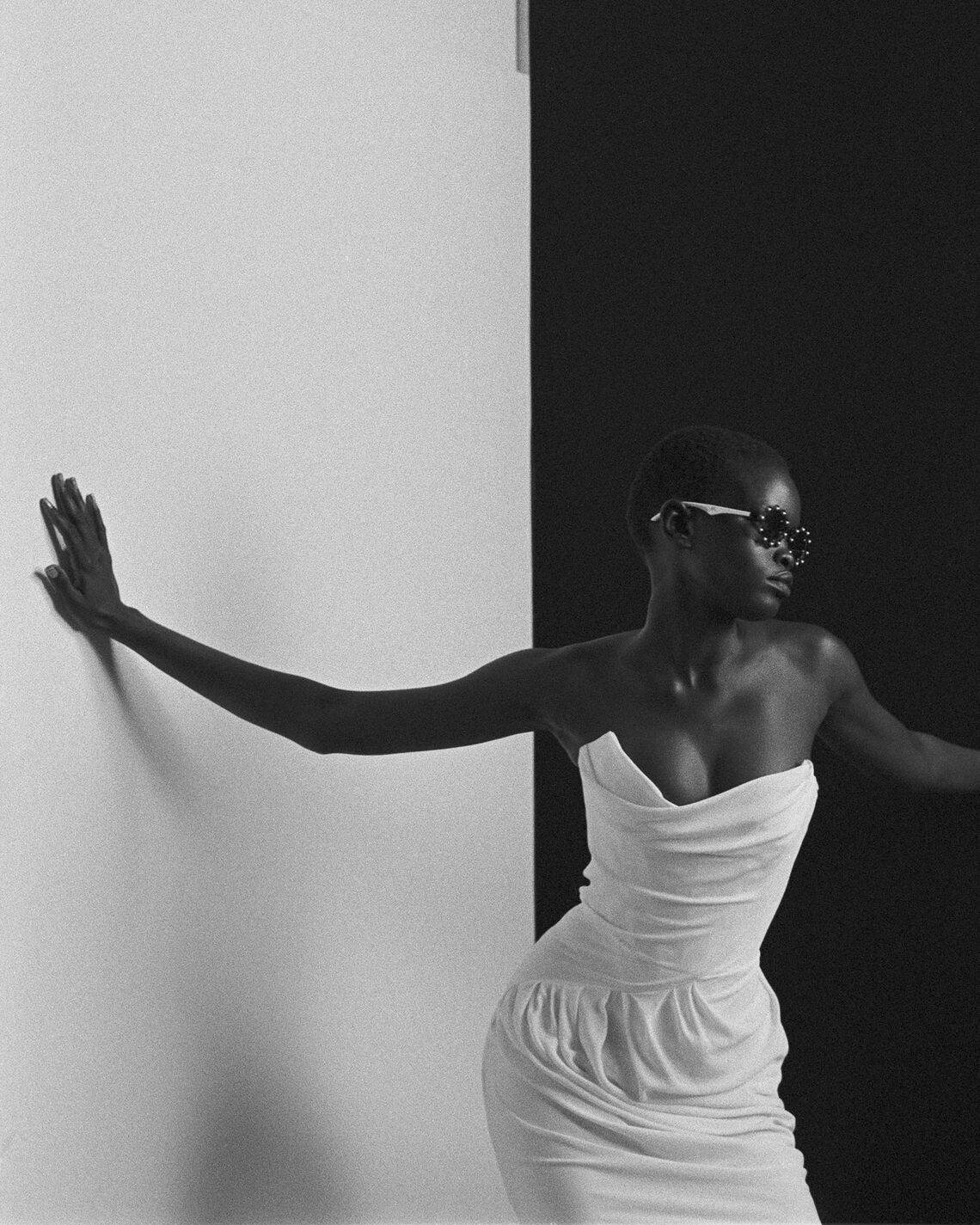 The corseted Vaida dress is refined in its shape and construction to achieve an elevated look, wrapping fabric across the bodice and hips. The masterful drapes are achieved through an experimental pattern cutting technique, which plays with juxtaposing round and straight cut pattern pieces, creating unexpected folds and asymmetry.